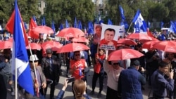 Соттун сыртында Текебаевдин жана Чотоновдун тарапкерлери митинг өткөрүп жатат.